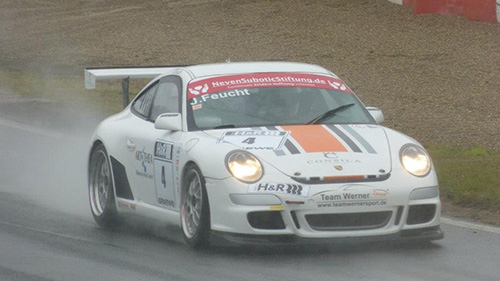 Für Jens und Fabian war es das erste Mal, die rund 450 PS auch bei nasser Strecke zu beherrschen. Klaus Werner lieferte sich mit dem baugleichen Cup Porsche von W.Assmann ein packendes Rennen. Es ging Stoßstange an Stoßtange bei absolut null Sicht, durch die aufgewirbelte Gischt. Es stellte sich für K.Werner als sehr schwierig heraus, bei der rutschigen Fahrbahn an W.Assmann vorbei zu kommen ohne eine Kollision zu riskieren. Deswegen hieß es Druck von hinten machen und auf Fehler des Vordermanns warten.